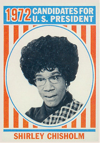 Shirley Chisholm was the first black woman to be elected to Congress, winning in New York in 1968 and retiring from office in 1983. She campaigned for the Democratic presidential nomination in 1972, but is best known for her work on several Congressional committees throughout her career. A feisty politician, Chisholm has also been recognized in popular culture and in the political and academic worlds for her symbolic importance and career achievements.